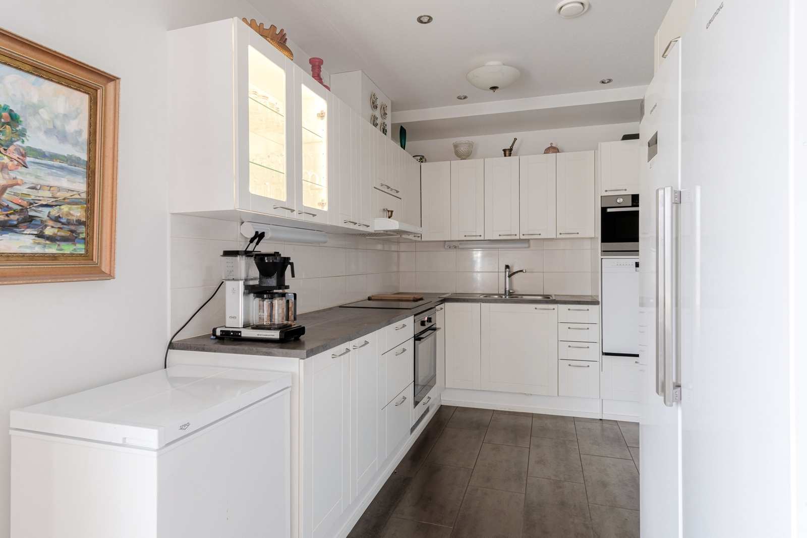 | Keittiön varustus | Jääkaappi ja pakastin: jääkaappi, pakastin Tasot: laminaatti Seinät: maalattu Lattia: laatta Muut varusteet: astianpesukone, liesituuletin / suodatin Liesi/uuni: keraaminen |