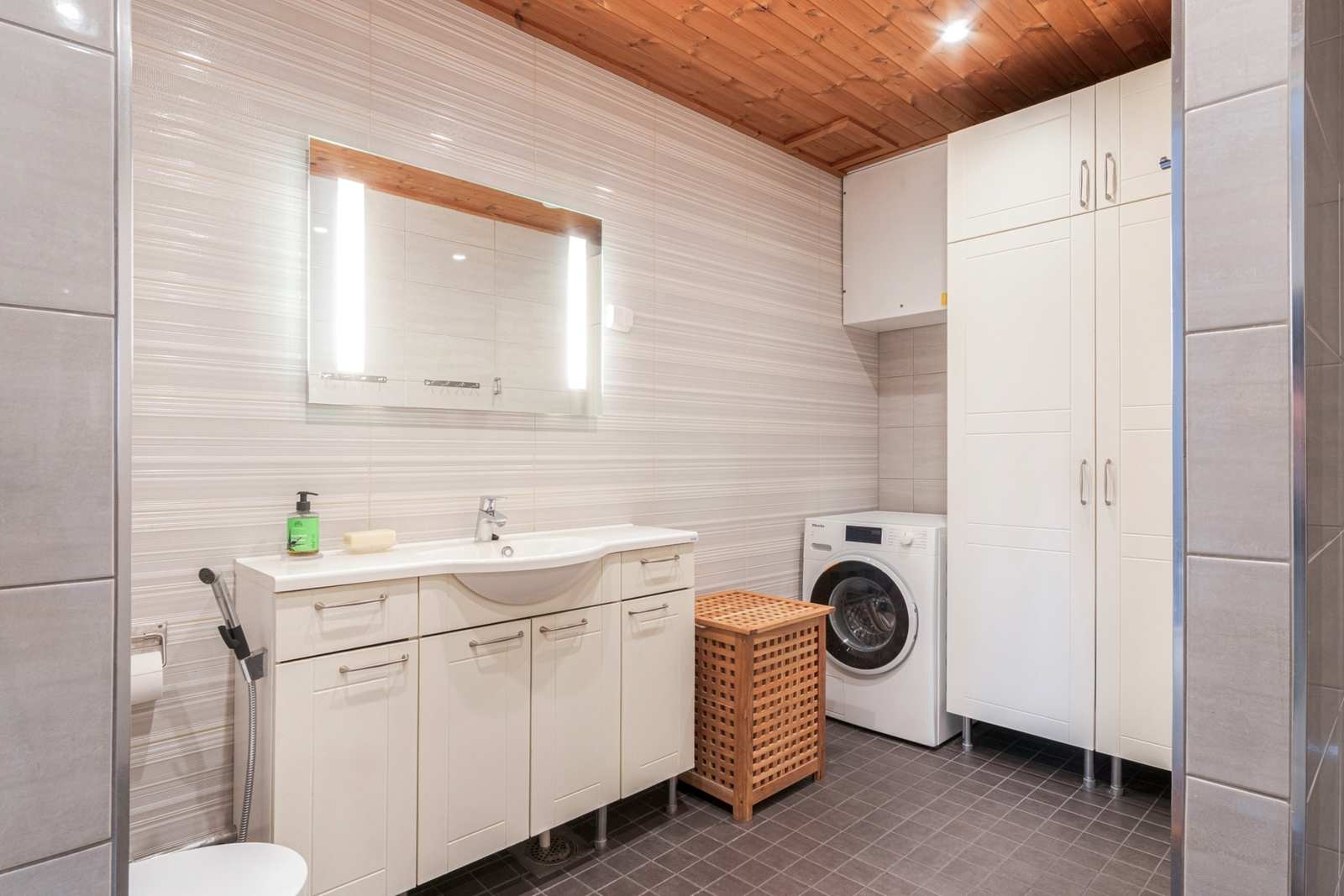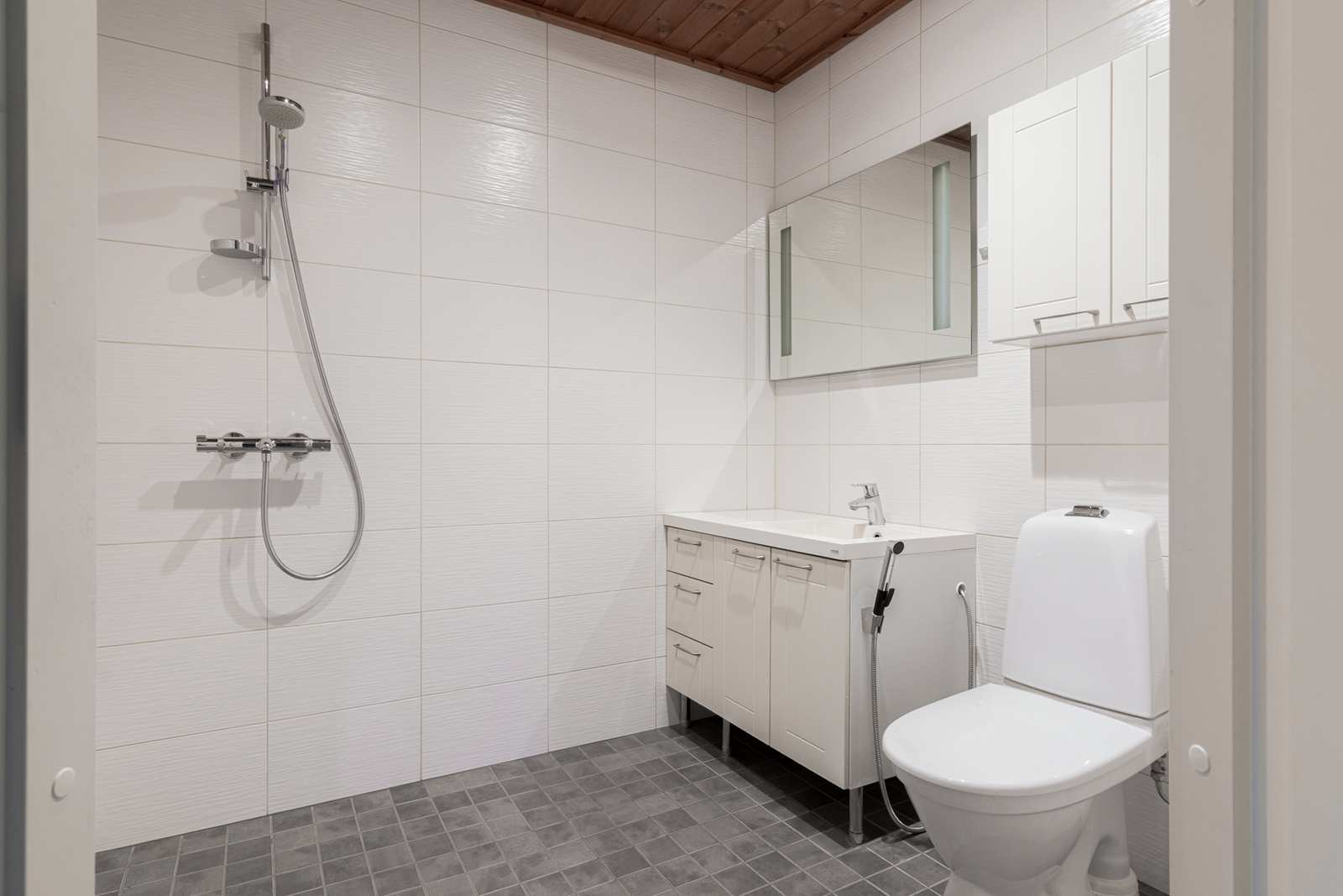 | Kylpyhuone | Varusteet: suihkuseinä, lattialämmitys, wc-istuin, suihku Seinät: kaakeli Lattia: laatta |