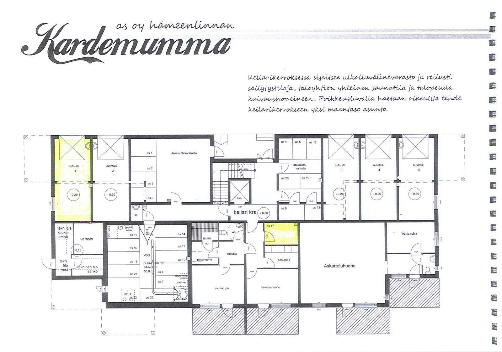 julkisivuaolohuoneen jatkeena oleva parvekekeittiöruokailutilamaisemaa ruokailutilastamakuuhuonekorkealta katsottunatyöhuonetyöhuoneen kuntoiluparvekejulkisivuteteinenkodinhoito ja osa pesuhuonettasaunakodinhoitotilakylpyhuoneyhtiön valoisa rappukäytäväalakerran pohjakuva, keltaisella varasto ja autotallialkuperäinen pohjakuva asunnostarakentajan alkuperäinen esittely
