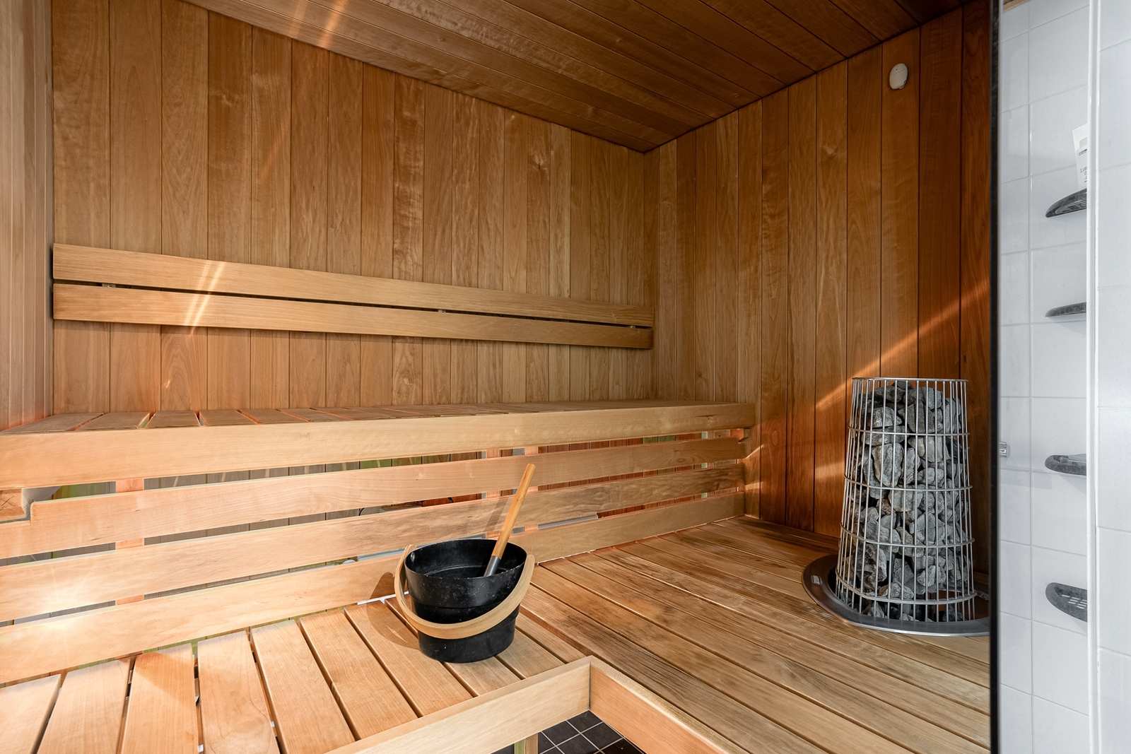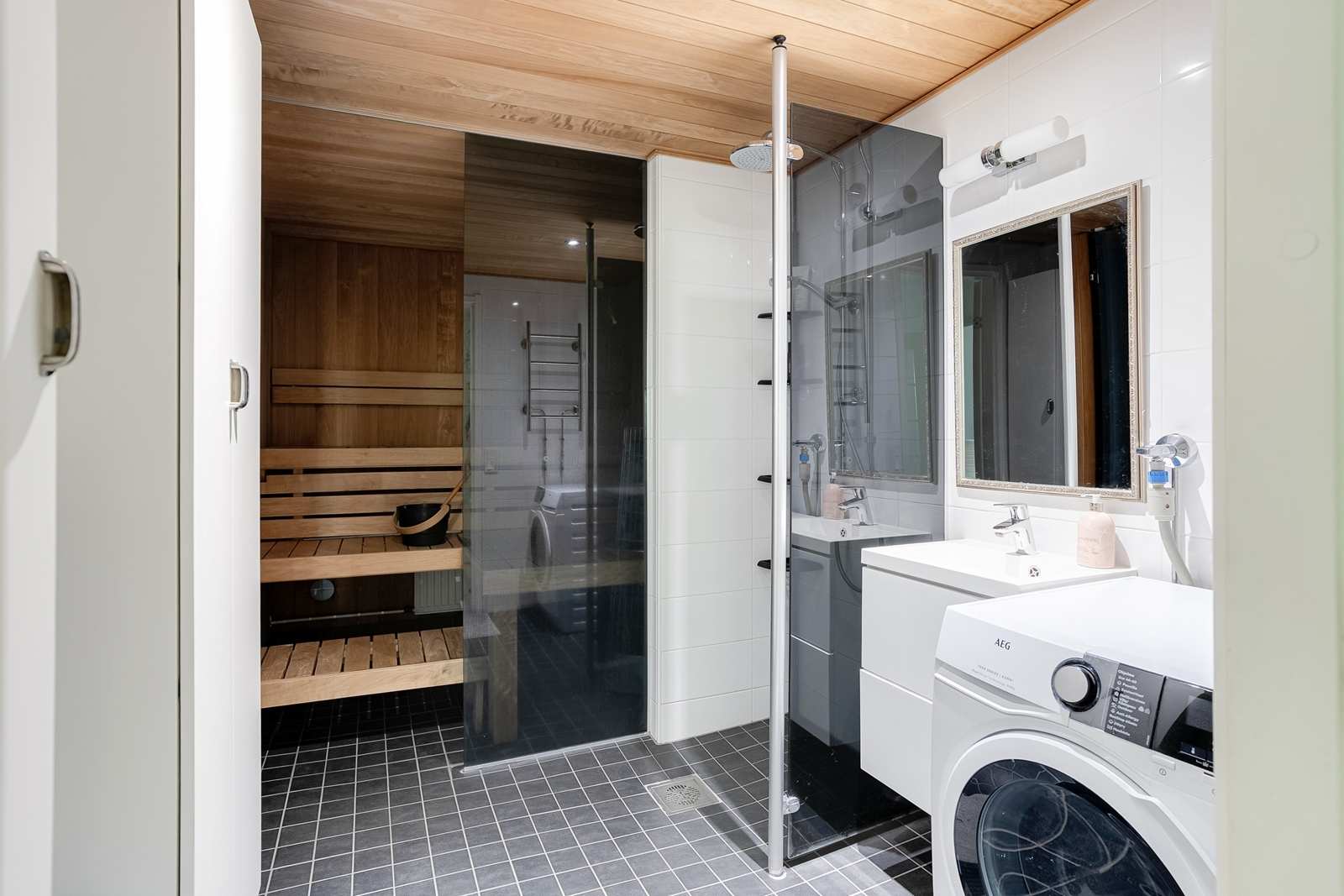 | Saunan pinnat | Seinät: puu Lattia: laatta  |