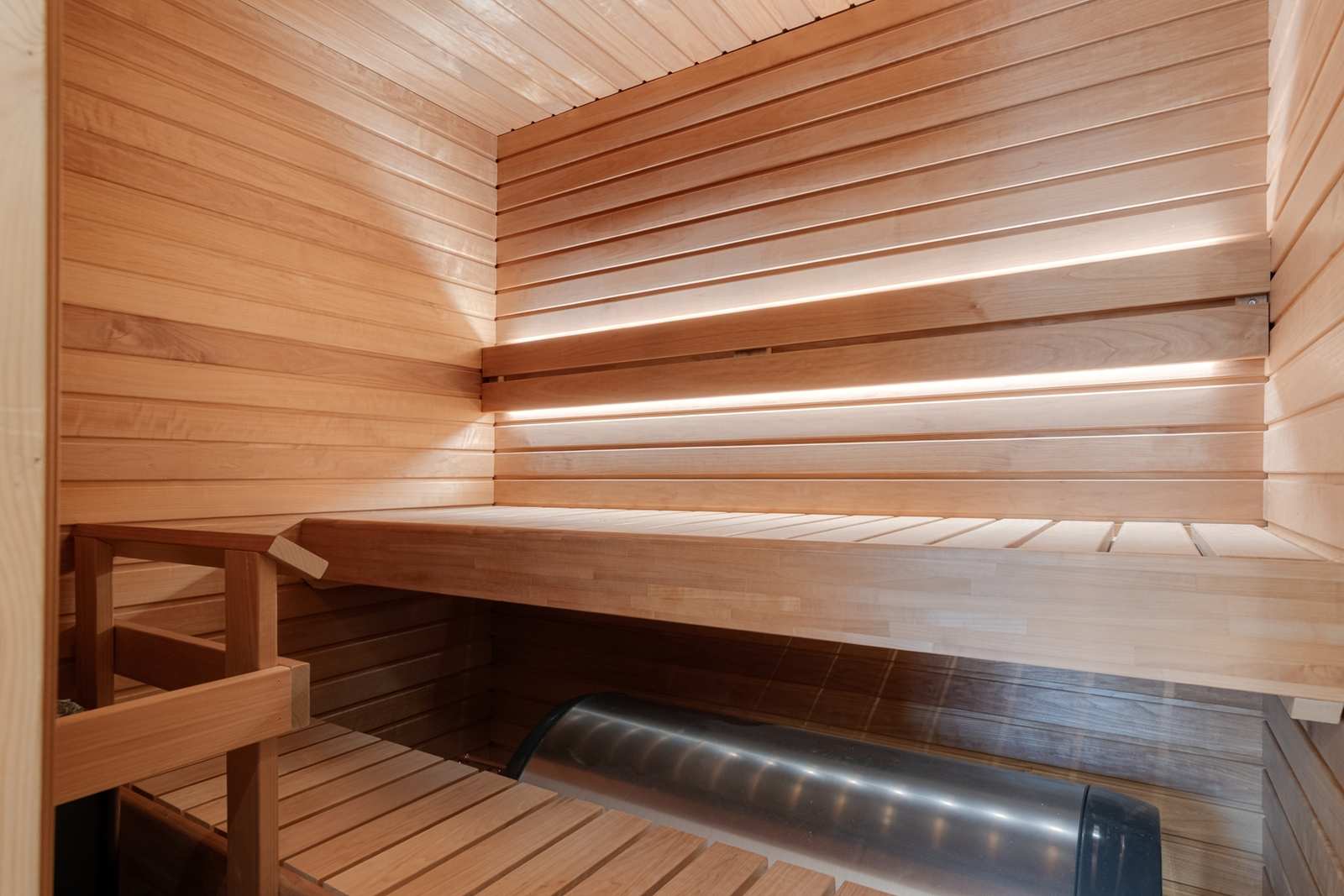 | Saunan pinnat | Seinät: puu Lattia: laatta |