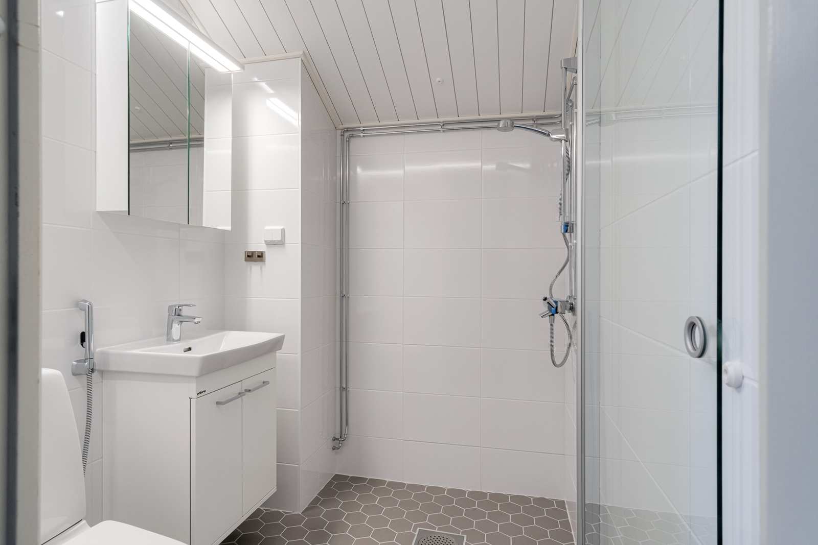 | Kylpyhuone | Varusteet: lattialämmitys, suihku Seinät: kaakeli Lattia: laatta |