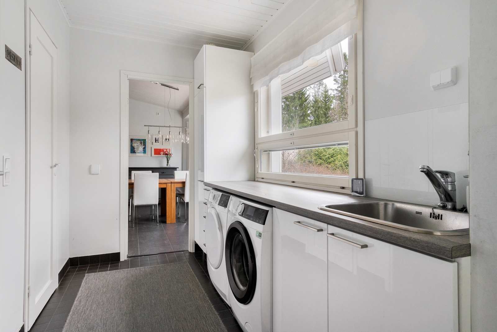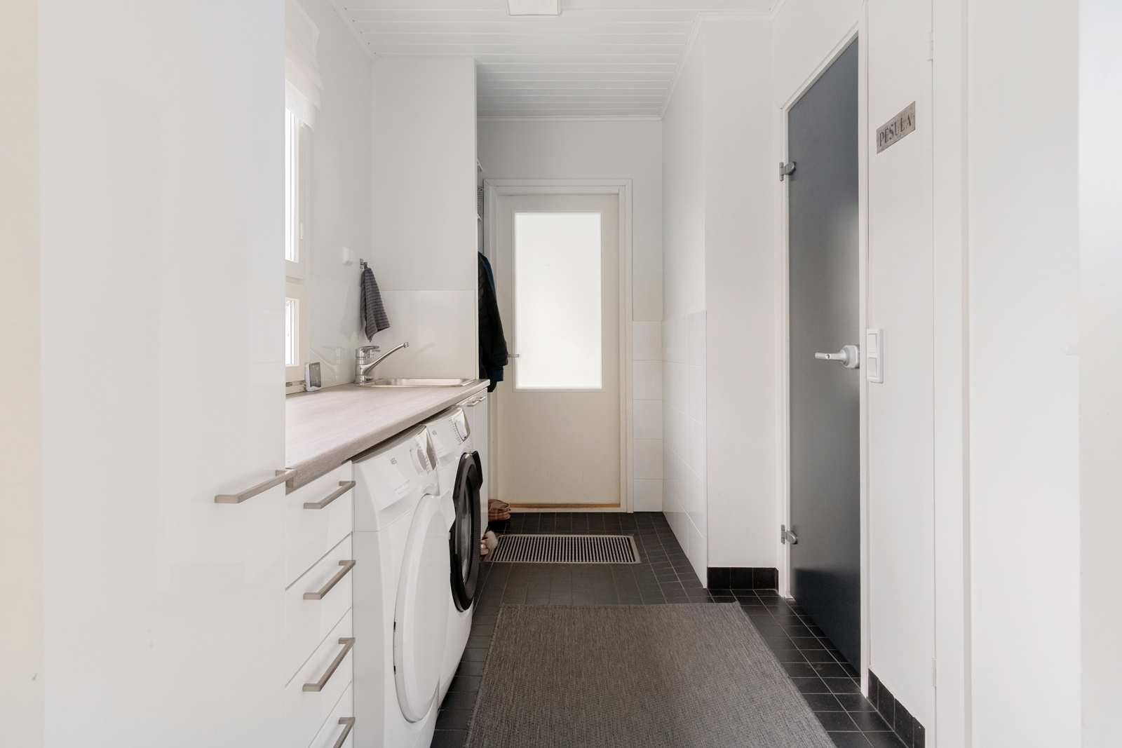 | Kodinhoitohuone | Tilava ja valoisa kodinhoitohuone. Sisääntullessa virutat tenavat ja karvaiset kaverit kurapisteessä. |