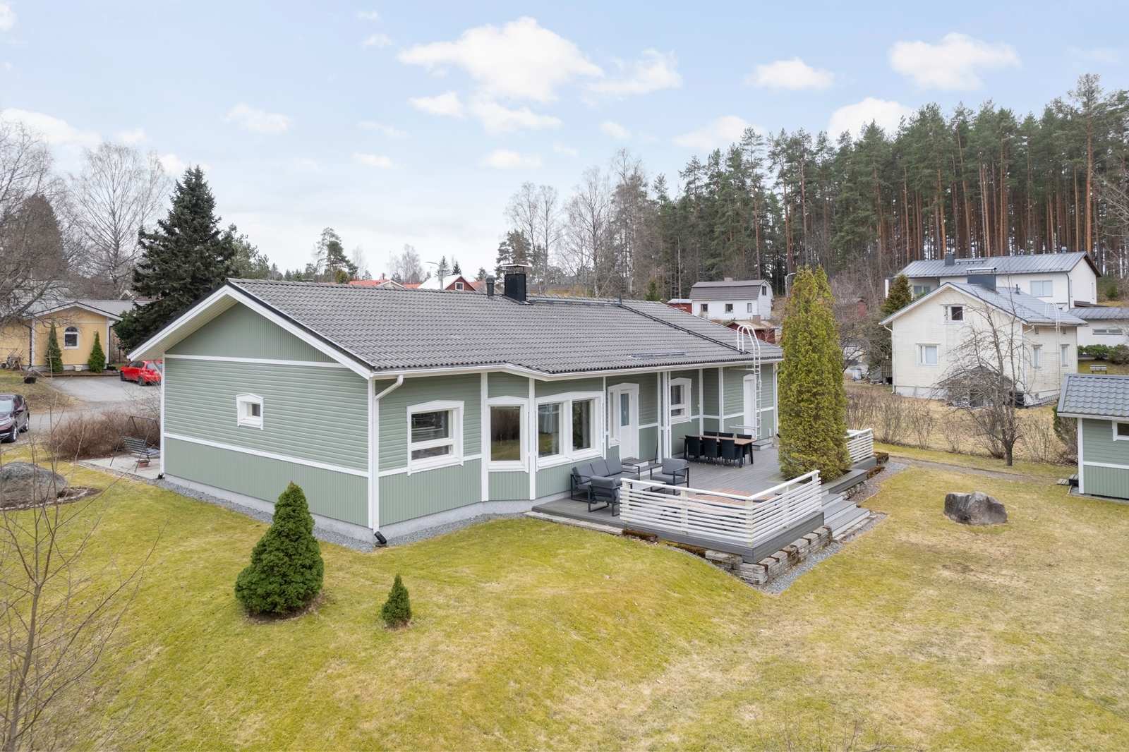 Tervetuloa kotiinAvara olohuoneVaraava takka olohuoneessaSuuri terassi takapihallaKeittiössä on kokoa ja korkeuttaRuokailutilaTakapihan puoleltaEteisaulaAikuisten makuuhuoneTuulikaappi kotiin tullessaJulkisivutTakapihan tunnelmiaKodinhoitohuoneIkkunallinen saunaPesuhuoneErillinen wc eteisen tuntumassaPesuhuoneen wcKadun puoleltaKoti korkealta katsottunaKiinteistö kartallaKiinteistö ilmakuvassaKaavakartta