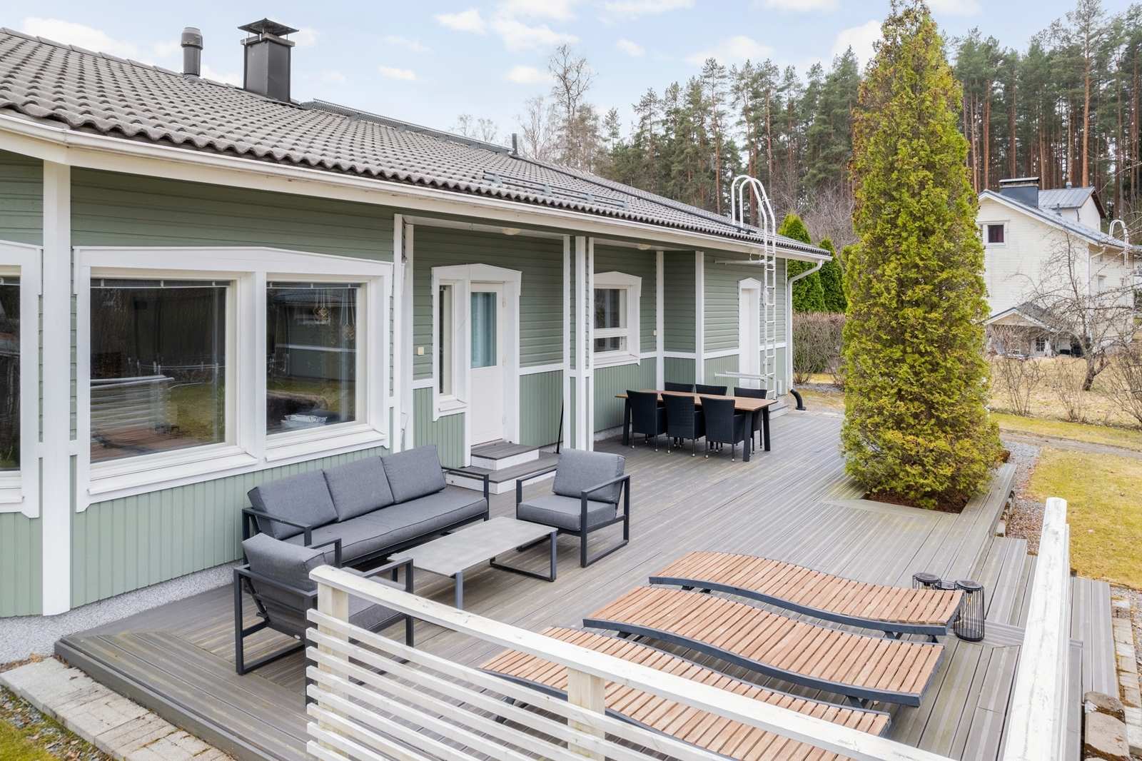 | Maasto | Nurmikkoinen takapiha. Suuri 100m2 terassi takapihalle kesäiseen oleskeluun. Etupihalla kivetetyt kulkreitit. |
