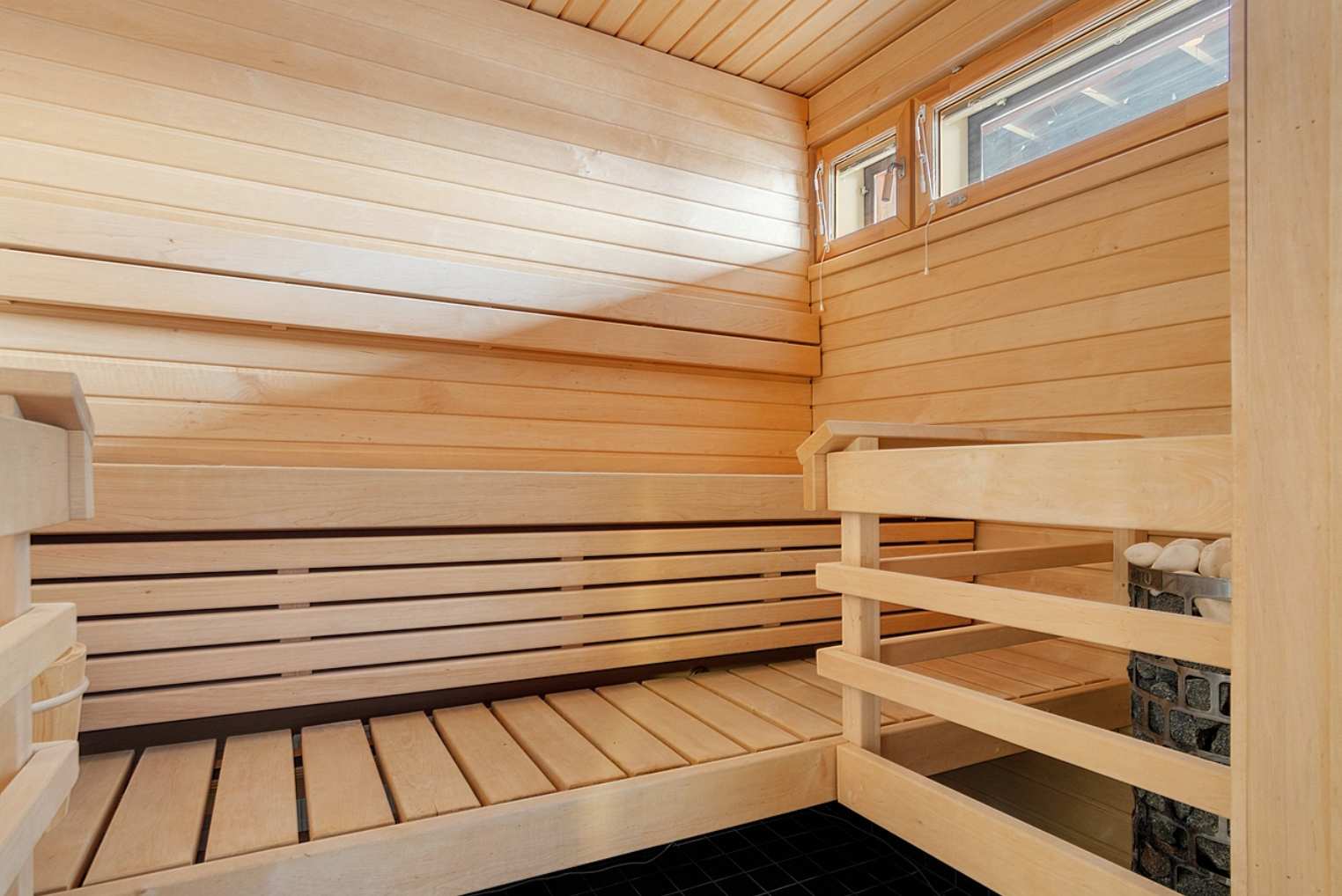 | Saunan pinnat | Seinät: puu Lattia: laatta |