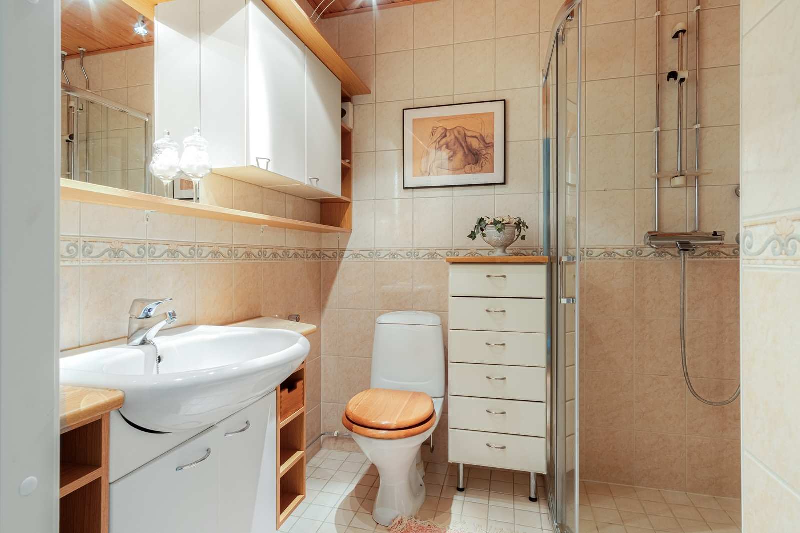 Kylpyhuone | Varusteet: lattialämmitys Seinät: kaakeli Lattia: laatta |