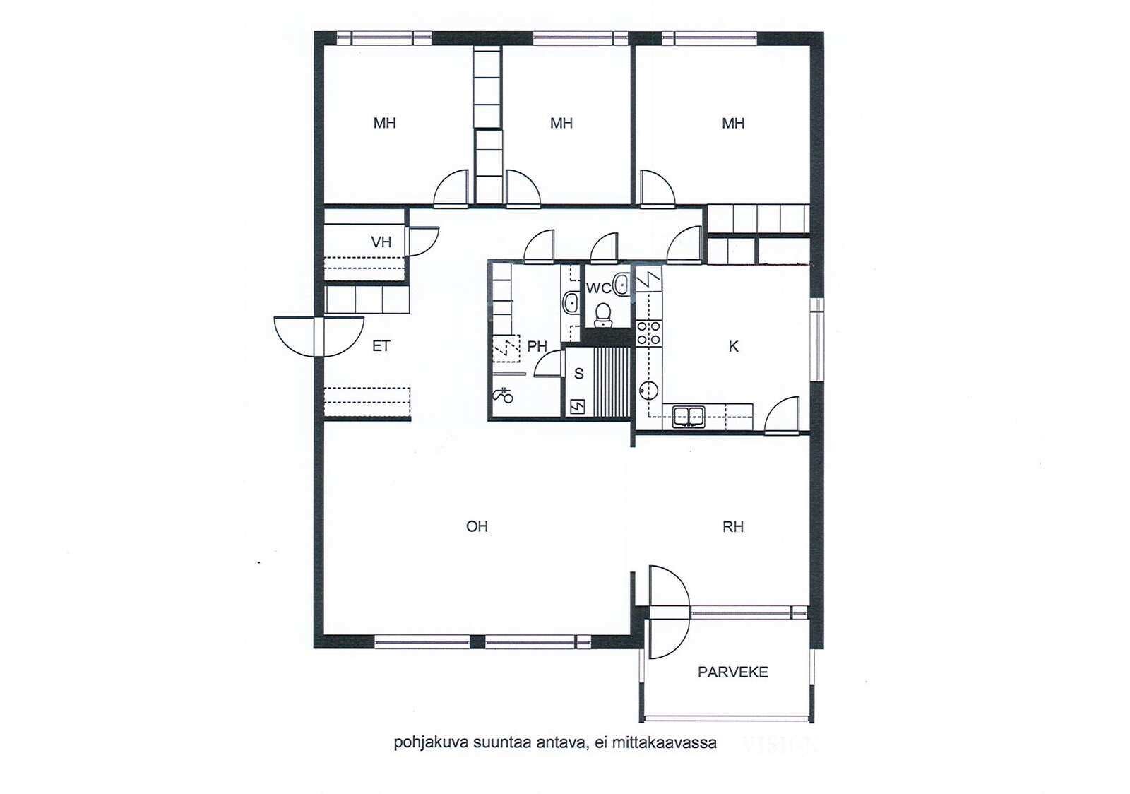 Huoneistoselitelmä | 4h,k,sauna,psh,wc,vh,parveke |
