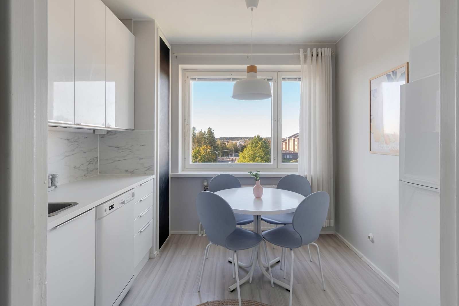 Hurjan suloinen pikkukoti korkealla. Kerrassaan kauniiksi kauttaltaan remontoitu. Valkoinen keittiö, tilaa ruokapöydälle ja maisemat kaupunkiin asti. Kylpyhuone remontoitu putkiremontin yhteydessä, hiljattain uusitut kaapistot ja pesukonekin valmiina paikallaan. Vaaleat lattiat, kiva kulmaikkuna olohuoneessa. Säilytystilaa molemmissa huoneissa sekä eteisessä. Palvelut lähellä ja junalle hilpaiset hetkessä. Kuvissa näkyvästä sisustuksesta voit neuvotella jos haluat tavaroiden jäävän paikalleen, ovat ostettavissa. Heti vapaa kodiksesi.
