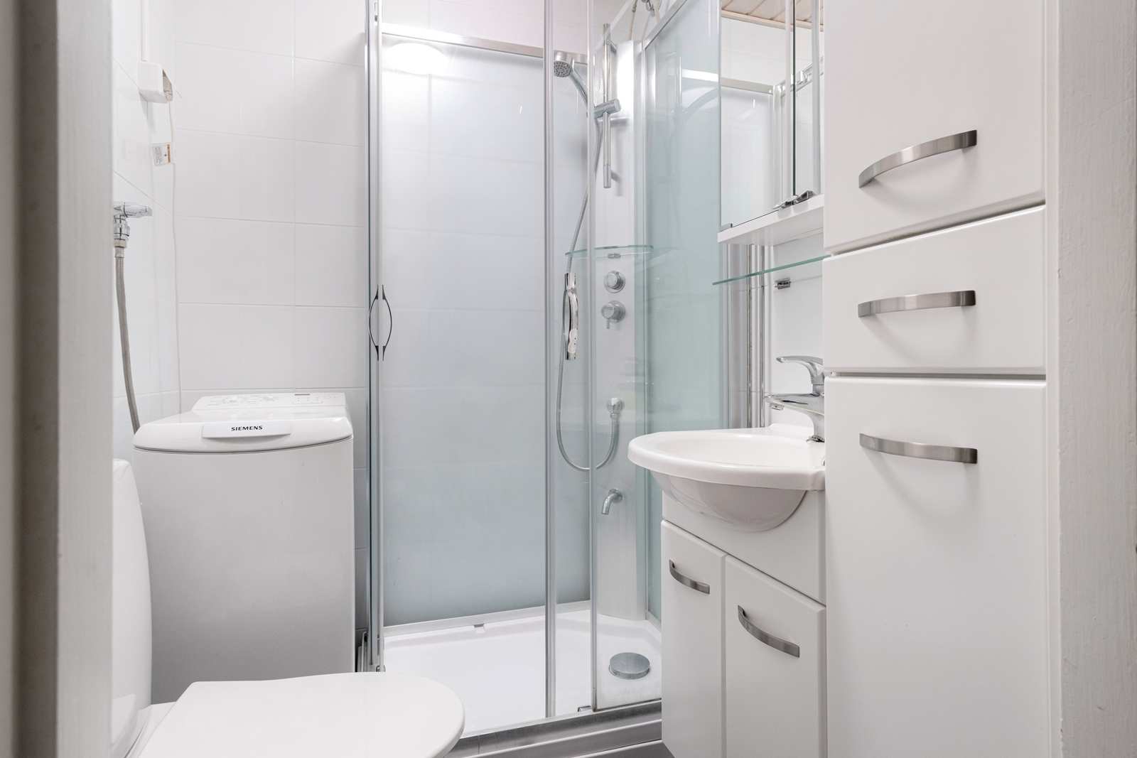 | Kylpyhuone | Varusteet: suihkukaappi, pesukone, pesukoneliitäntä, wc-istuin, suihku, peilikaappi Seinät: kaakeli Lattia: laatta |
