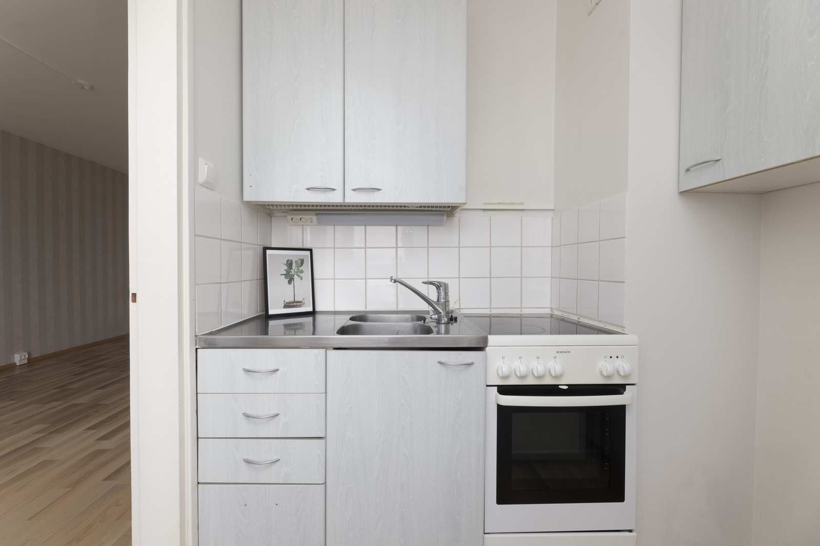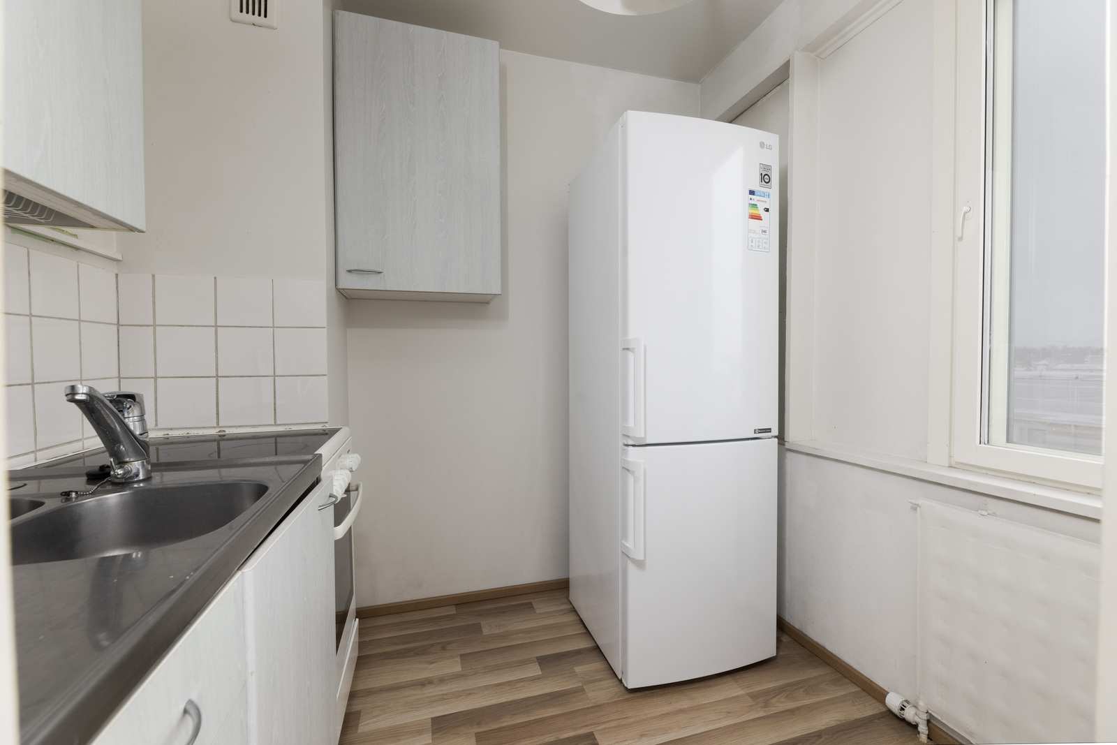 | Keittiön varustus | Jääkaappi ja pakastin: jääkaappi/pakastin Tasot: laminaatti Seinät: kaakeli, maalattu Lattia: laminaatti Liesi/uuni: keraaminen |