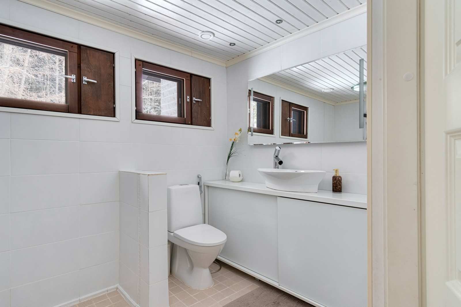 | Erillinen WC | Toinen wc pesuhuonern yhteydessä, toinen pikku wc yläkerrassa makuuhuoneiden läheisyydessä Lattia: laatta Varusteet: lattialämmitys Seinät: kaakeli Lukumäärä: 2 |