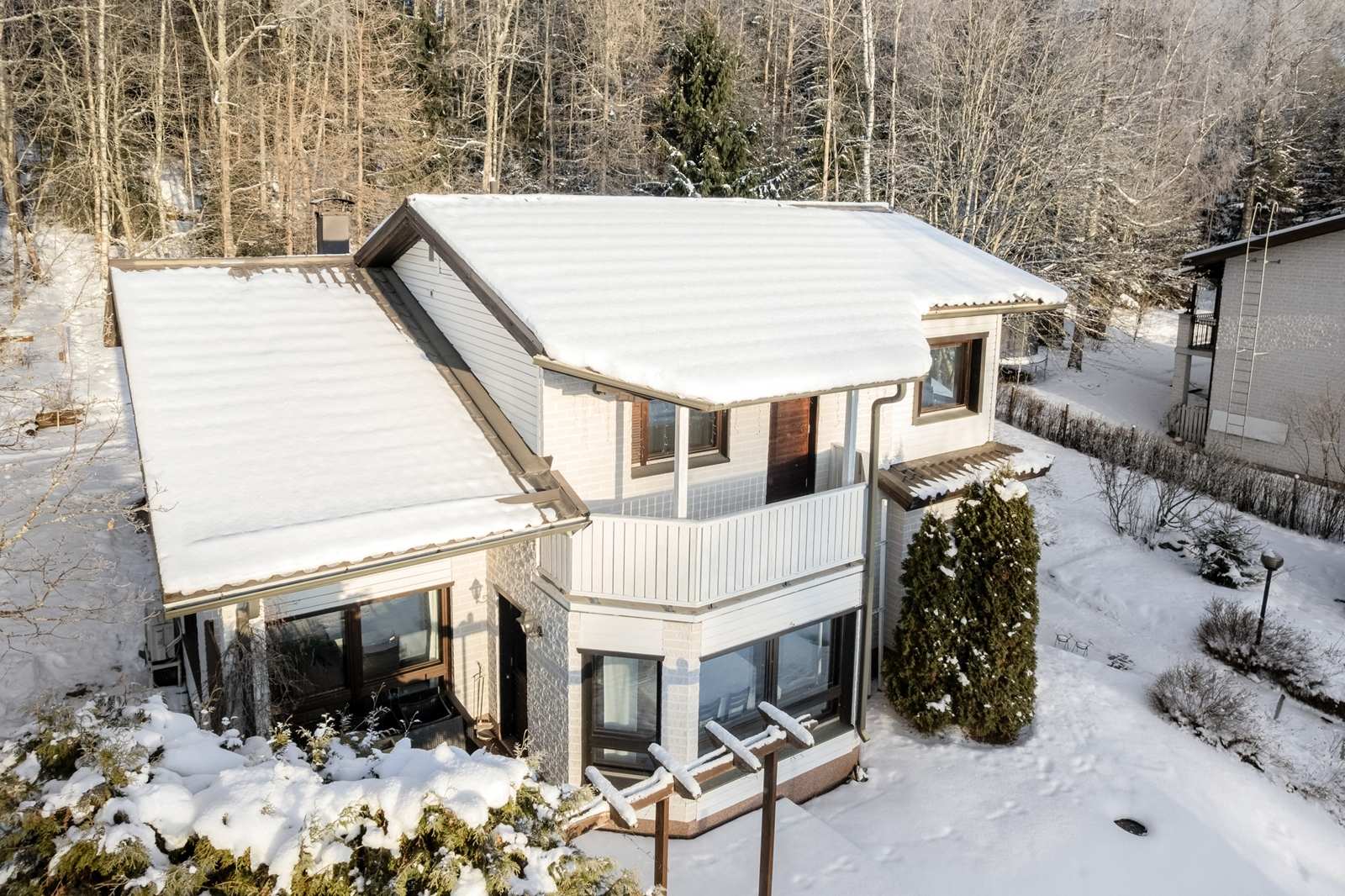 Valkotiilitalon hurmaaKorkea olohuoneKatse eteiseen päinValoisa olohuoneRuokailutilaKeittiöKokkailutilaKeskitasannePortaat ylätasanneVaraava takkaTakkahuoneSuurin makuuhuoneYläkerran parvekeTeinihuone yläkerrassaTeinihuone yläkerrassaYläkerran wcJulkisivutKorkealta katsottunaPesuhuoneIkkunallinen saunaPesuhuonettaPesuhuoneen wcKodinhoitohuonePiharakennusMetsän laidassaKiinteistö kartallaKiinteistö ilmakuvassaAsemapiirros