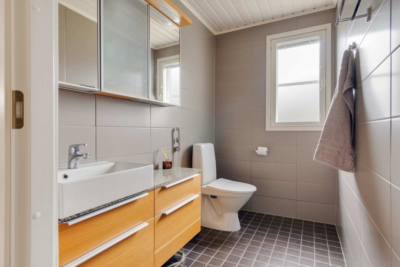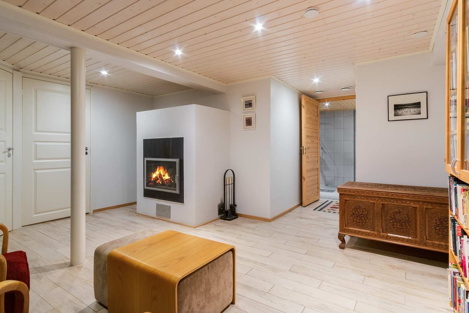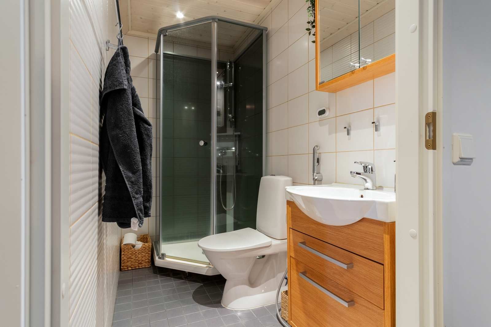 | Saunan pinnat | Seinät: puu Lattia: laatta |