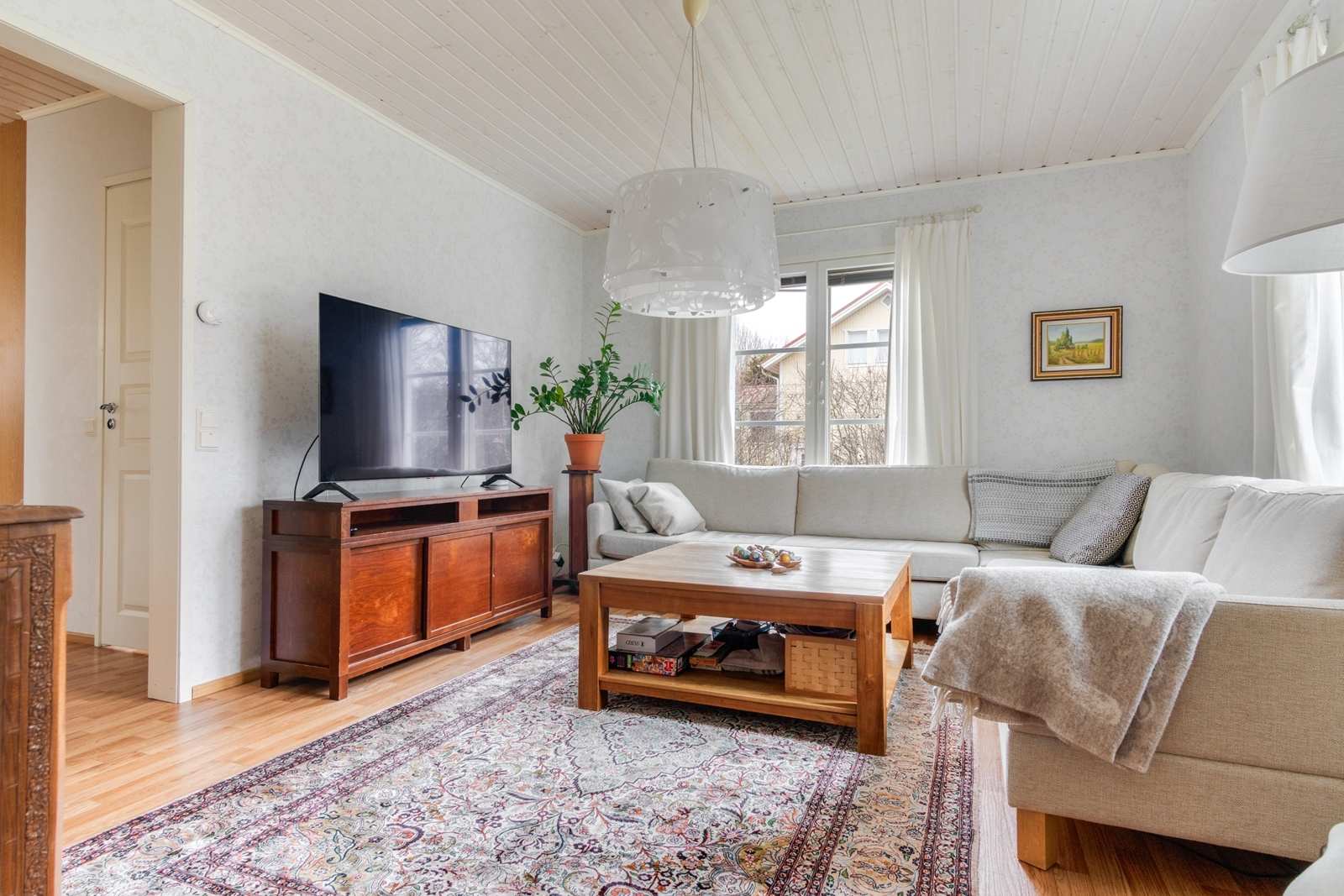 | Muuta kauppaan kuuluvaa | Sälekaihtimet/rullaverhot, keskuspölynimurin varaus, hälytys- /valvontajärjestelmä |