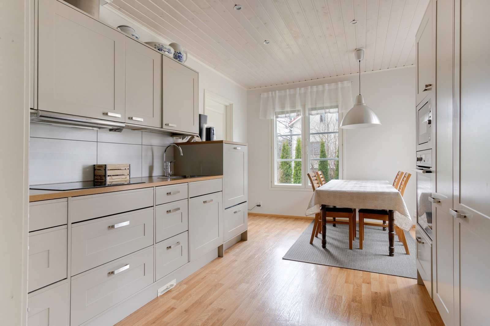 | Keittiön varustus | Jääkaappi ja pakastin: jääkaappi/pakastin Seinät: kaakeli Lattia: vinyyli Muut varusteet: mikroaaltouuni, astianpesukone, liesituuletin / hormi Liesi/uuni: induktio |