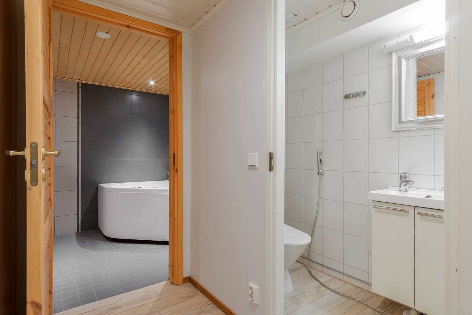 | Kylpyhuone | Varusteet: poreamme, lattialämmitys, suihku Seinät: kaakeli Lattia: laatta |