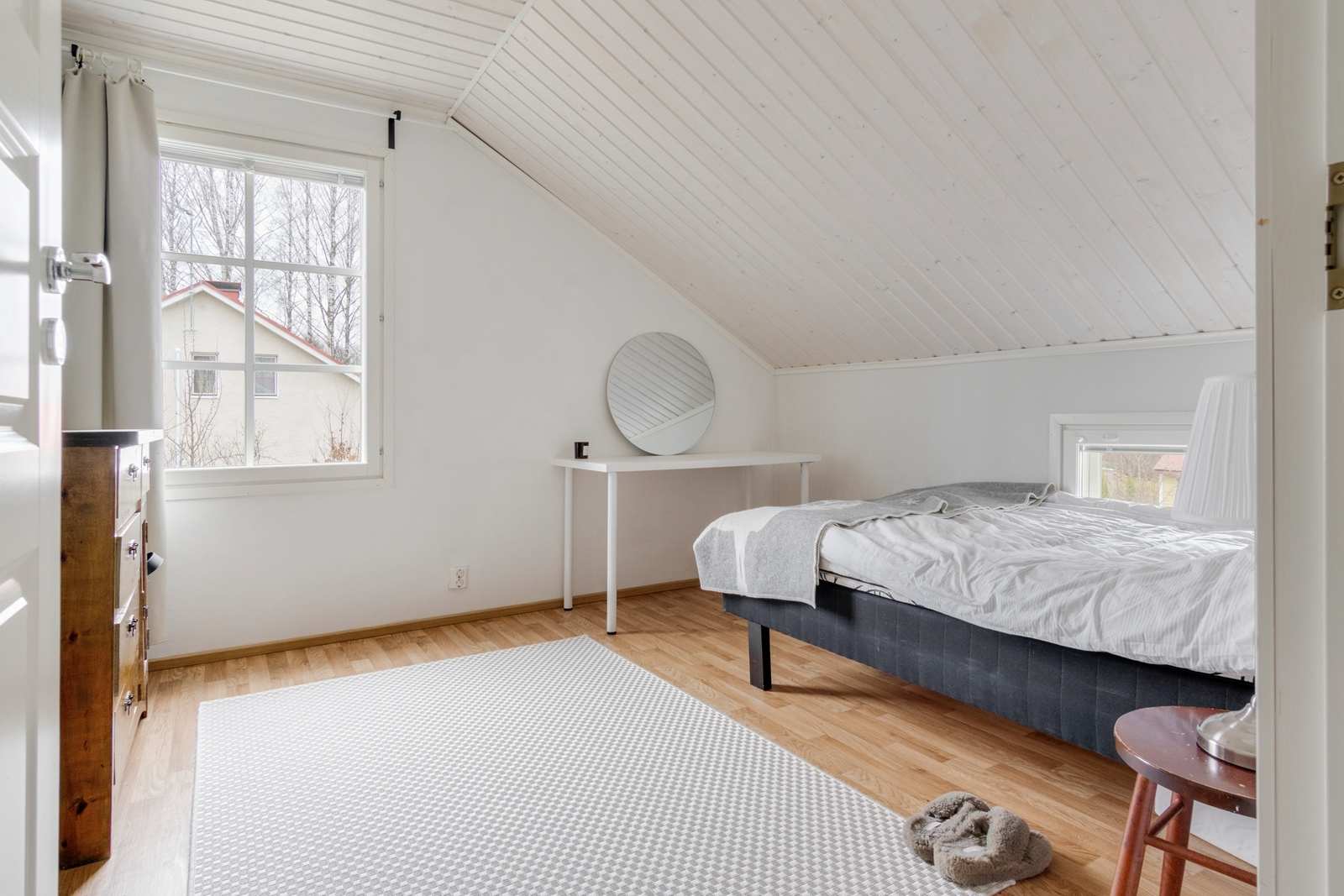 | Makuuhuone | Makuuhuoneista kolme yläkerrassa, yksi alakerrassa |