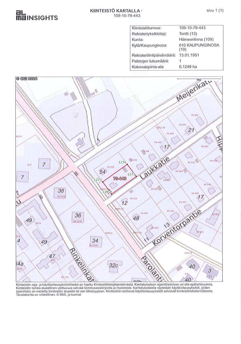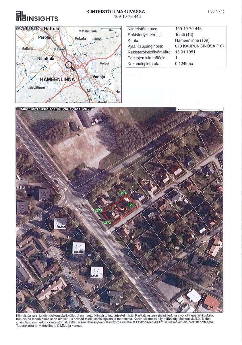 | Tontin pinta-ala | 1 249,0 m2 |