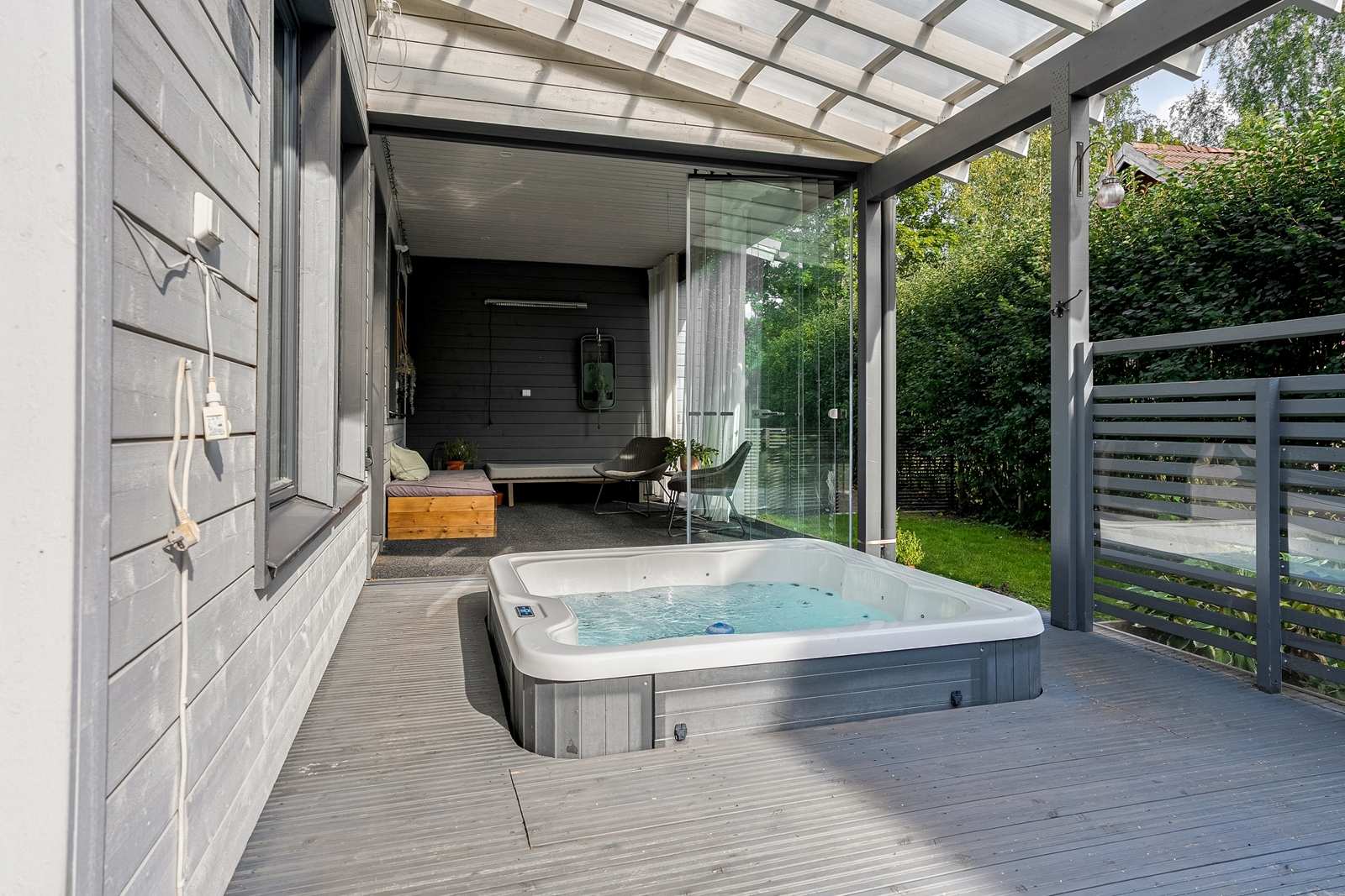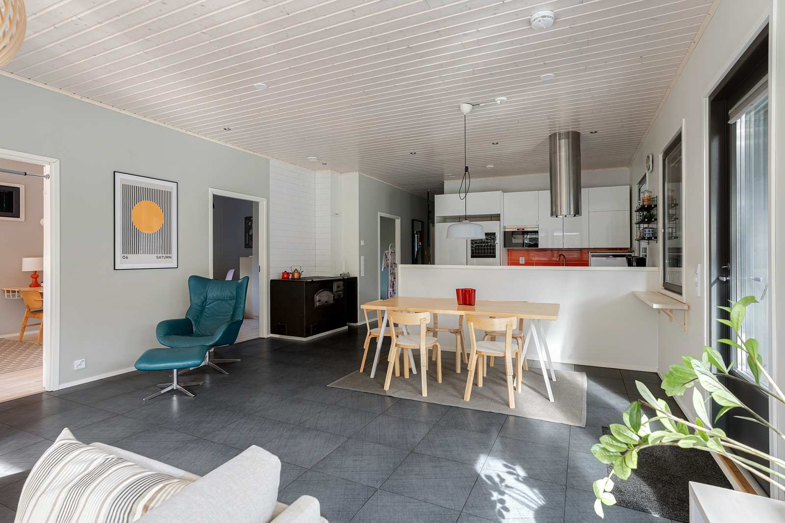 Pelipaikalla, kaikkien urheiluareenoiden, koulujen ja palveluiden keskellä on tämä kaunis talo. Nerokas pohjaratkaisu, jossa avaraa oleskelutilaa olohuoneen ja avokeittiön yhdistelmällä sekä neljä makuuhuonetta. Normaalia korkeammat huoneet. Suuret ikkunat. Viileämpiin iltoihin tilava lasitettu terassi, jonka jatkeena katettu terassi ulkoporealtaalla sekä avoterassit. Kompakti tontti tuuheiden pensasaitojen suojassa. Hurmaava puutarha kukkaistutuksia, kasvimaata, omenapuita, vadelmia ja tietenkin tilaa leikkiä ja pelata. Vesi-ilmalämpöpumppu , vesikiertoinen lattialämmitys, ilmalämpöpumppu ja puuhellakin. Edulliset asuinkulut. Erinomainen vaihtoehto suosikkialueen sydämeen tahtovalle ja uudehkon talon haluavalle. Esittelemme sopimuksesta.