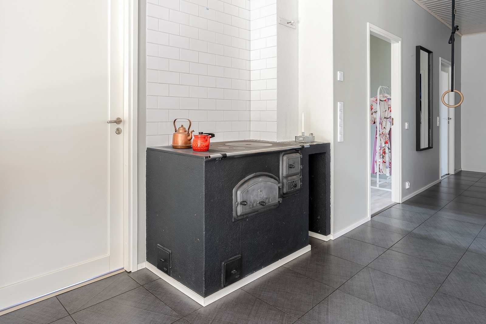 Keittiön varustus | Jääkaappi ja pakastin: jääkaappi/pakastin Tasot: kivi Seinät: kaakeli, maalattu Lattia: laatta Muut varusteet: mikroaaltouuni, astianpesukone, liesituuletin / hormi Liesi/uuni: keraaminen, puuliesi |
